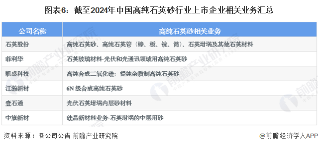 1、高纯石英砂产业上市公司汇总