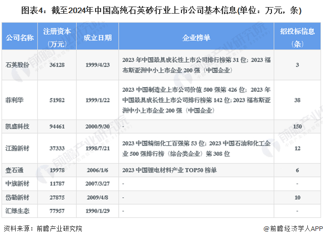 2、高纯石英砂行业上市公司基本信息对比