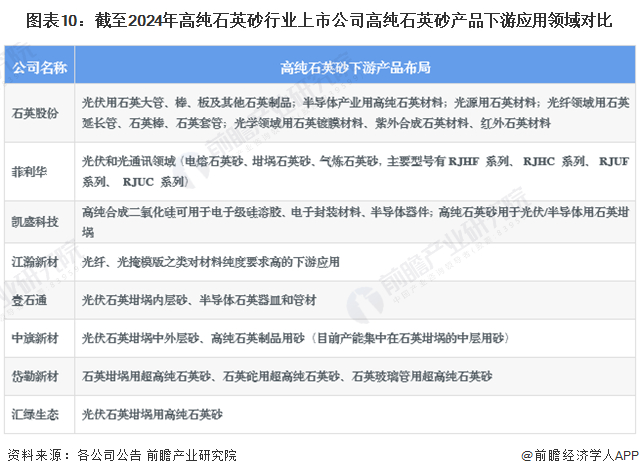 4、高纯石英砂行业上市公司高纯石英砂业务布局对比