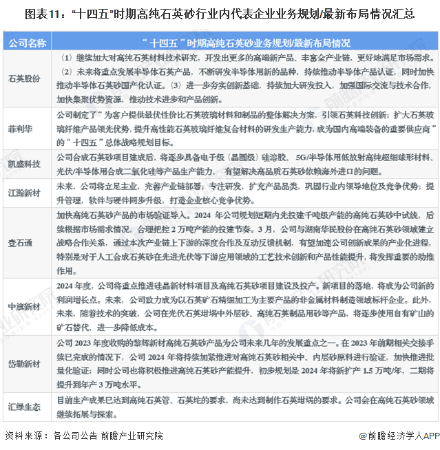 5、高纯石英砂行业上市公司高纯石英砂业务规划对比