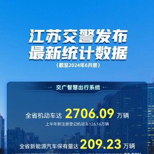 2024年上半年江苏机动车达2706.09万辆 驾驶人达3518.79万人