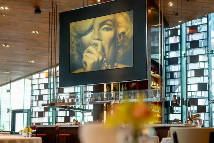 它的地址位于使馆区附近的侨福芳草地,餐厅里放置的玛丽莲·梦露的艺术照抬眼可见。