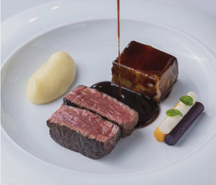慢炖牛小排配着浓郁的红酒李子酱汁,将牛肉的甜美和云南南瓜的甜美扩散,高级的肉质感被土豆泥和红酒李子汁衬托出了丰富的层次。