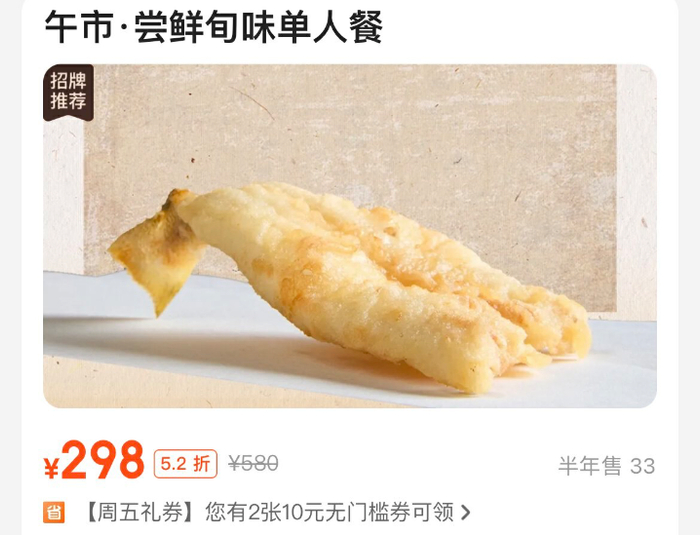 人均580的日料喜一郎,单人餐298。