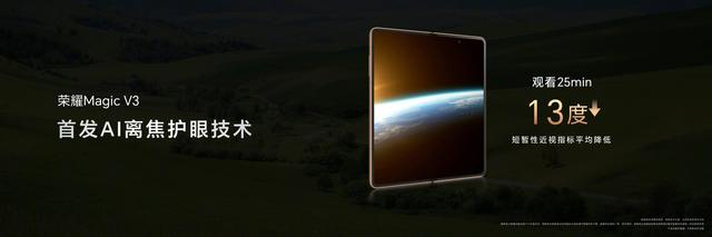 此前的手机护眼方案主要聚焦于如何降低频闪、蓝光等阅读屏幕时所面临的危害,而本次荣耀借助AI技术实现了手机护眼能力从被动到主动、从通用到精准的转变。具体到功能上,Magic V3拥有“干眼友好”和“AI离焦护眼”两大创新功能。