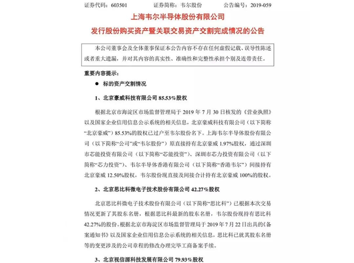 其中,靠吃下豪威,使韦尔股份一跃成为全球图像传感器三巨头之一,收获华为、小米等一批大客户。