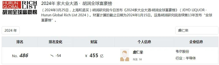 截至6月15日,虞仁荣连同其控制的绍兴韦豪,以及弟弟虞小荣,合计持股35.66%。这位宁波富豪,在《2024胡润全球富豪榜》上,身家达455亿元。