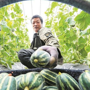 3月20日,在一师七团设施农业基地,种植户正在采摘甜瓜。 兵团日报全媒体记者 陈洋 摄