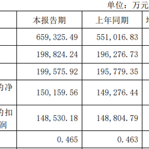 金钼股份7月12日晚间披露的2024年上半年业绩快报显示,报告期内,公司实现营业收入65.93亿元,同比上升19.66%;实现归属于上市公司股东的净利润15.02亿元,同比微升0.59%。