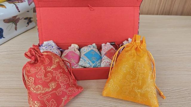 与乌梅汤同样受欢迎的还有曹杨社卫的“七彩香囊”。七款香囊以芳香药材为料,有清香、驱虫、避瘟、防病等功效。