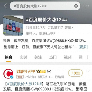 最近,百度旗下的“萝卜快跑”频频登上热搜,7月10日因订单暴涨致百度集团股价上涨超10%。