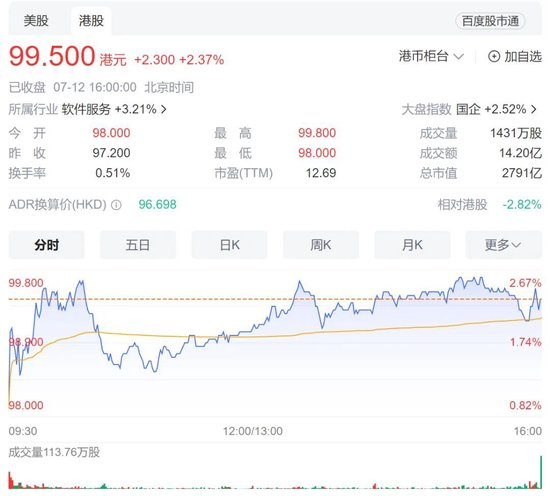 随后,连续两日百度港股盘中一度涨超12%,最高报99.5港元/股,为过去一个多月以来最高点,成交额更是此前的近5倍。
