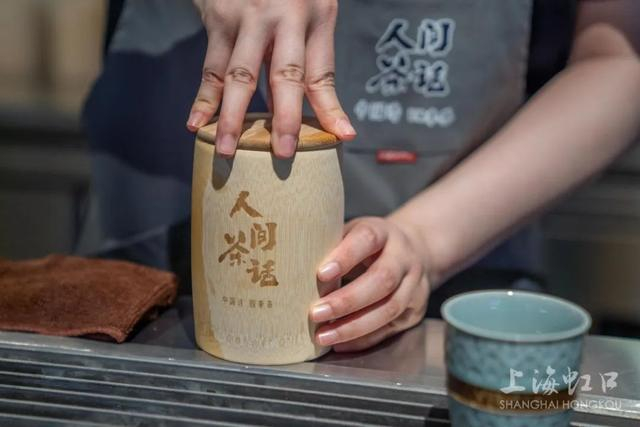 “人间茶话”位于四川北路沿街,店内的装潢以竹木材质为主,一桌一椅都透露出东方美学。据了解,该店由一位热爱茶文化的创始人创办,他从小受到中国传统文化的熏陶而酷爱饮茶,并希望通过茶饮这种媒介,将中国的传统文化传播出去。