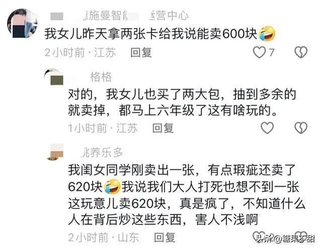 按照“黄牛”的说法,四五百元买来的稀有卡牌,拿到市面上一转手,能轻松炒到两三千元一张。然而,有不少砸重金抽到稀有卡牌的孩子却告诉记者,等想要卖卡变现时,却发现根本卖不出去。