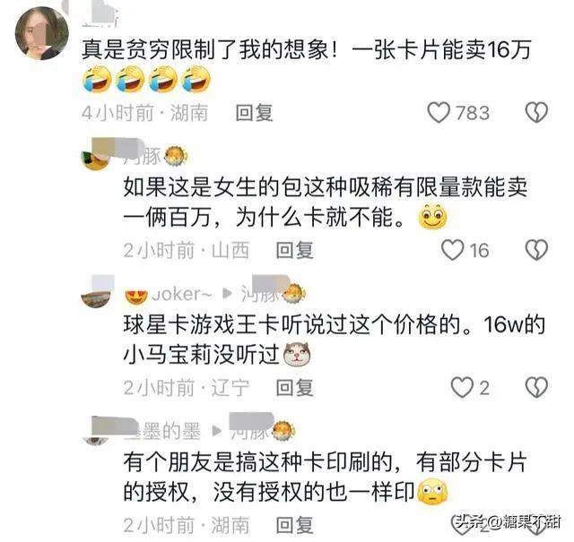 “之前有听说过青眼白龙一张卡被拍到几千万,16万的小马宝莉还是第一次听到。”