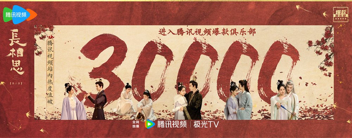 在主创不懈努力的云包场下,《长相思2》终于进入腾讯站内热度值破3万的爆款俱乐部。