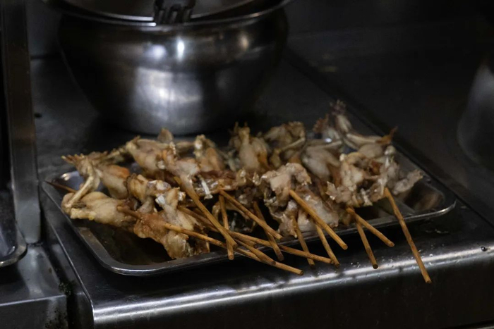 在炭火的炙烤下,