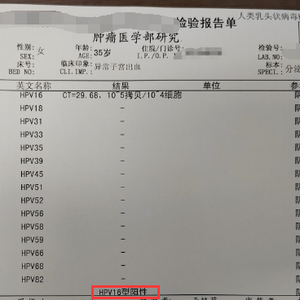 据世界卫生组织统计,有超过90%的宫颈癌患者病因是HPV感染,这其中又有约70%与16型和18型相关。如下面检验报告单所示:
