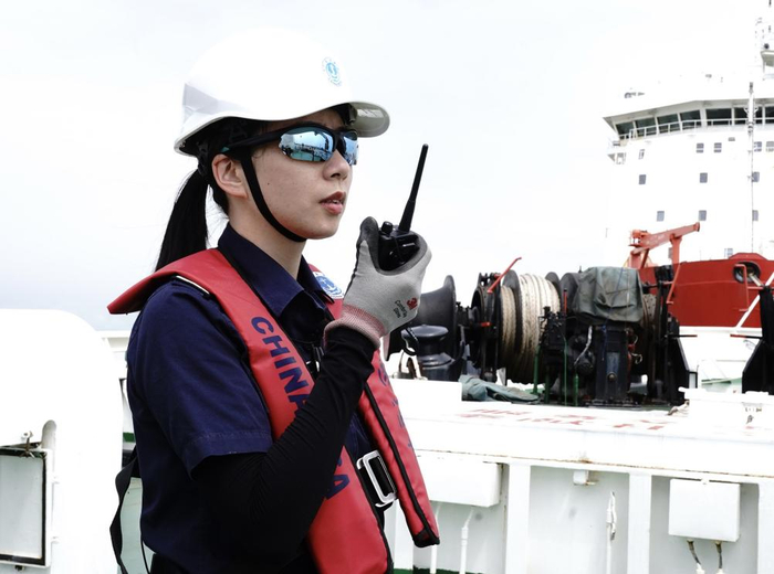 与“海巡01”轮并肩作战的十年中,从南印度洋马航MH370客机失联搜寻到东海“桑吉”轮燃爆应急处置,詹春珮参与了20多次海上重大搜救任务,航程平均每年可绕地球一周。从晕船的新手到三副、二副、大副……在这个历来以男性为主导的航海世界里,她成长为中国首位远洋公务船女船长。