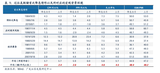 历史上看,美联储降息可能的情形:一是对抗经济萧条而降息(73-74年、80年、81年、89年、01年、07年);二是应对全球风险或市场崩盘而降息(87年、98年、20年);三是在相对平稳宏观环境中的预防式降息(89年、95年、19年)。
