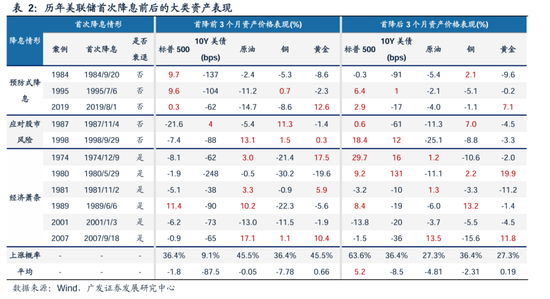 如果是第一种情形,美联储为应对萧条而降息,则一般宏观基本面和资产价格都弱;如果是第二种情形,美联储为应对风险而降息,则宏观基本面和资产价格可能在短暂冲击之后快速反弹;如果是第三种情形,美联储预防式降息,则先定价软着陆、再定价复苏,一般权益资产表现较好,商品可能先跌后涨。