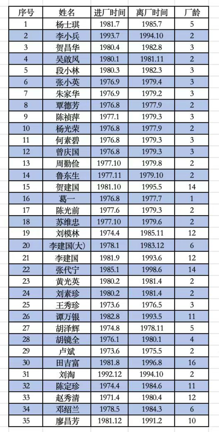 35位失联职工名单