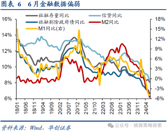 ①宏观层面,仍处于债务与价格水平走弱的负反馈之中。6月CPI、PPI环比均为-0.2%,市场走势更多反映了环比走弱。从6月更为领先的金融数据来看,M1同比-5%,前值-4.2%,当下我们认为整个市场依然处于债务和价格走弱的负反馈中。