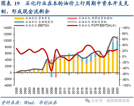 当前时点往后的股利稳定性出发,家电、石化值得重视。红利及自由现金流配置持续两年占优后,作为低频价值策略,除关注股息率绝对水平高低外,股利及自由现金流稳定性更是中长线资金的关注重点,从股利稳定性出发,家电、石化值得重视:1)家电23年自由现金流进一步改善,稳定的股利支付能力突出。以美的为代表行业经营重心明显后移,美的早在2022年中报就新增“聚焦现金流改善”内容,考核重心从前端营收转向后端现金流,家电行业本身稳定的竞争格局形成了可控的资本开支、产业链话语权形成对上下游的资金占用,增厚了家电的自由现金流创造。2)石化23年自由现金流维持稳定,一方面受益于疫后全球复苏带来油价上涨后的利润增长,虽油价经历2022下半年快速回落,但整体仍位于周期高点;另一方面相比于2016-2019年油价回升区间行业CAPEX/EBITDA由59%升至90%,2023年指标值仅为67%,本轮油价上行背景下行业整体资本开支较为克制。