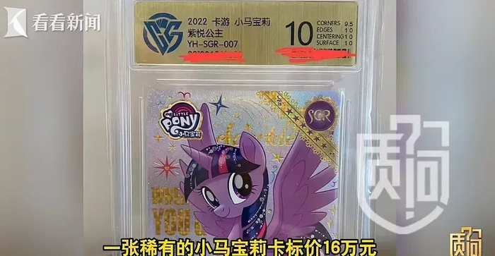 据肇庆市融媒体中心报道,记者在线下文具店看到,一包包小马宝莉卡有趣影、彩虹、辉月、暮光等多种包装,每包售价从2元至10元不等,最贵的暮光包50元一板,每板4包,每包只有五六张卡,卡牌还分为R、SR、SSR等不同等级。