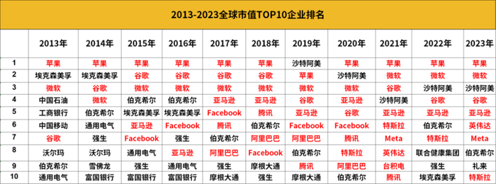 十年之前,人工智能还只有人工挖油、拉存款、制药和化妆品、卖电话卡,十年之后电子产品、显卡、元宇宙、电动汽车都是智能的。全球市值前十公司的变迁代表了一个时代的更迭,抓住风口就能抓住财富的把手,随着风起舞即可。入局投资英伟达的话,从2022年开始至今已经翻了近10倍;入局特斯拉,也能有10倍的涨幅。资源、能源、国家垄断为主造出来的虚假市值繁荣,支撑不起全球TOP10的真实底层优质资产。