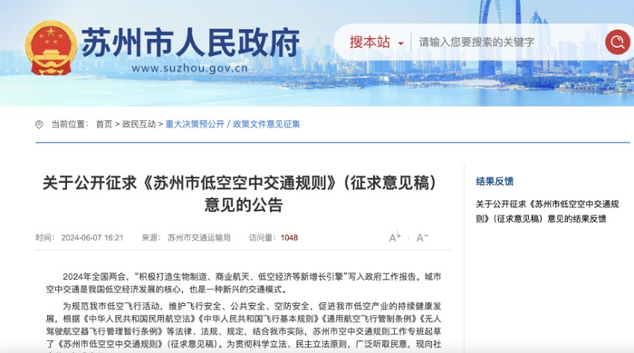 据了解,6月7日,苏州就《苏州市低空空中交通规则》开始公开征求意见。6月16日,苏州高铁新城经济发展有限公司与若航工业技术有限公司就相关直升机起降坪的建设达成合作协议,苏州北站官宣有望成为全国首个提供直升机交通服务的高铁站。