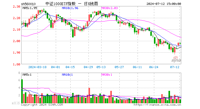 7月12日,中证1000ETF指数(560010)跌0.35%,成交额1.76亿元。当日份额增加300.00万份,最新份额为59.92亿份,近20个交易日份额增加4.05亿份。最新资产净值计算值为118.47亿元。