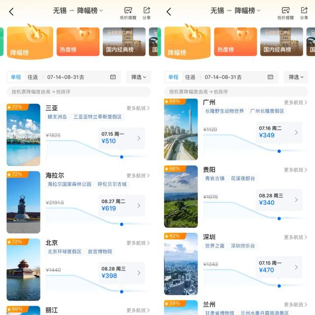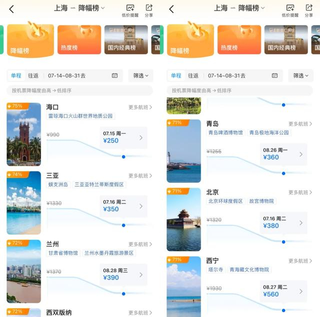 机票价格降幅也在70%左右