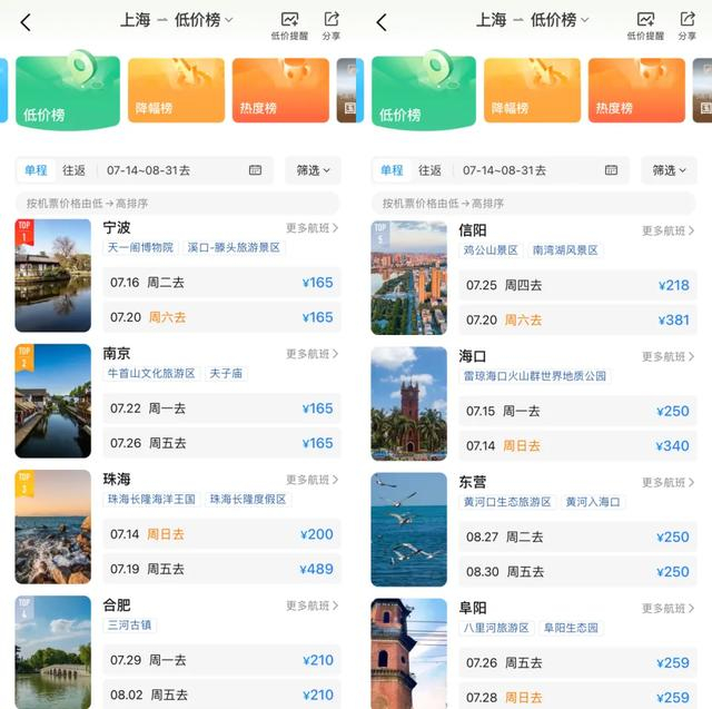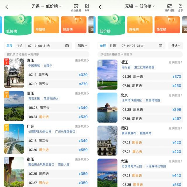 热门旅游地的机票价格