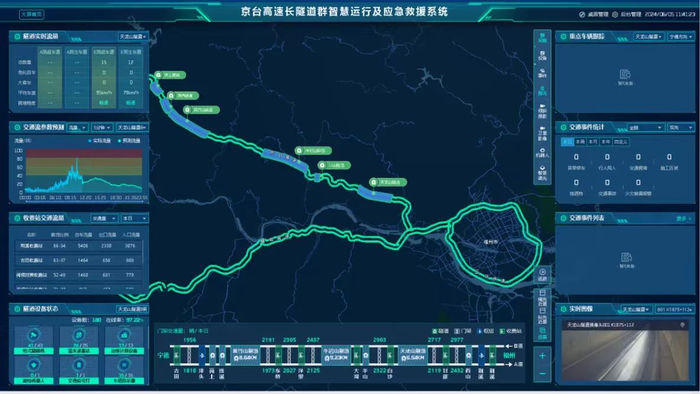 福建高速集团以问题和需求为导向,依托京台高速长隧道群开展《高速公路长隧道智慧运行和安全应急能力提升关键技术研究》科技专项攻关,并列入交通运输行业重点科技项目。当隧道发生交通事故、异常停车、行人闯入等交通事件时,长隧道群智慧运行及应急救援系统将秒级上报处理突发事件,同步形成分单元管控处置策略,实现突发事件的精准感知和快速处置;当隧道发生拥堵时,系统能根据实时路况自动生成多层级交通流分流诱导措施,联动巡检机器人,第一时间实施应急处置。同时,针对隧道交通流量,系统实现了未来5、15、30、60分钟维度的多尺度流量精准预测,为隧道分流诱导提供可靠的决策依据。同时,对于重点关注的“两客一危”车辆,系统也能够实时追踪,掌握重点车辆运行的一手信息。