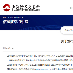 7月14日,上交所官网发布公告称,上交所和中证指数有限公司将于7月26日正式发布上证科创板芯片设计主题指数和上证科创板半导体材料设备主题指数,为市场提供更多科创板半导体产业投资标的。