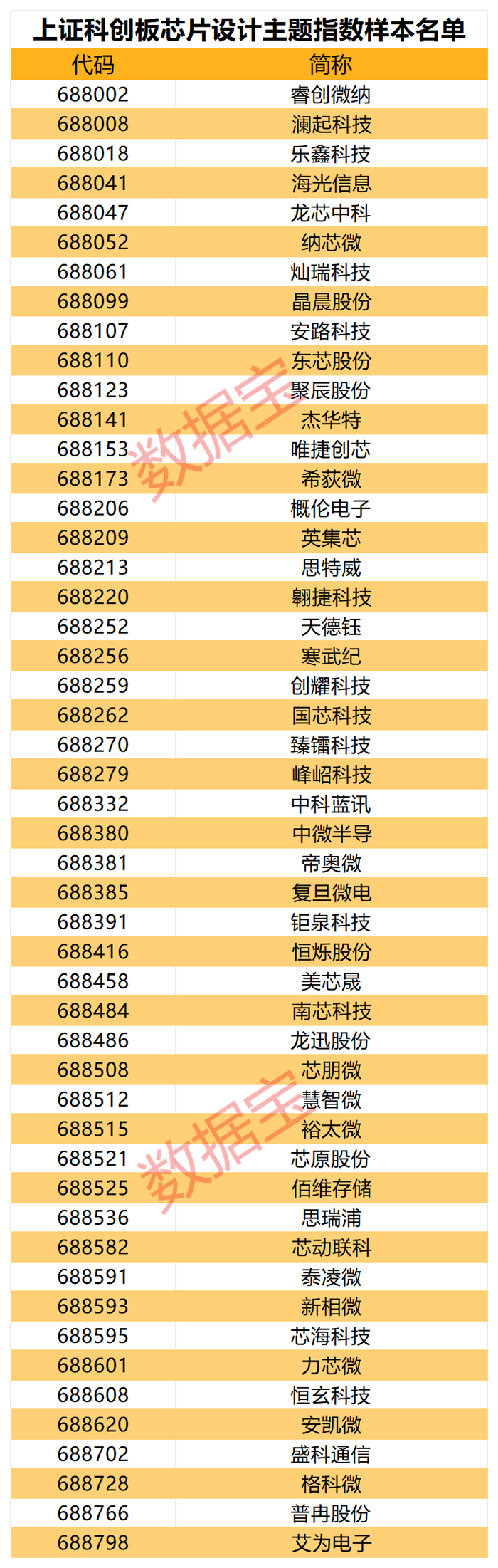 据介绍,上证科创板芯片设计主题指数选取科创板内业务涉及芯片设计领域的50家上市公司证券作为指数样本,以反映科创板芯片设计领域上市公司证券的整体表现。