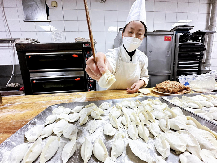 今天早上6点多,砂锅居负责包饺子的师傅就上岗了。虽说市民大都要到午饭口才来吃饺子,店里还是安排好两个小组的师傅提早上阵,把这款“圆梦水饺”给食客备足。“圆梦水饺用的是店里特色圆梦烧饼的馅料,而且寓意好,就在这几天供应,很多人都喜欢。”行政总厨刘大立说。