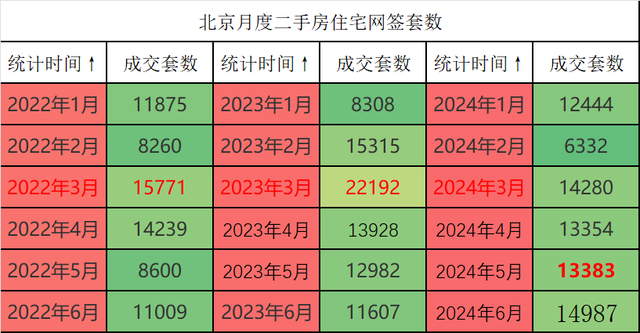 6月北京二手房合计住宅网签套数达到了14987套,按照目前趋势,超过2024年3月的小阳春。环比5月上涨12%,同比去年同期上涨了29%,整体看楼市在3月小阳春后再出现小高峰。