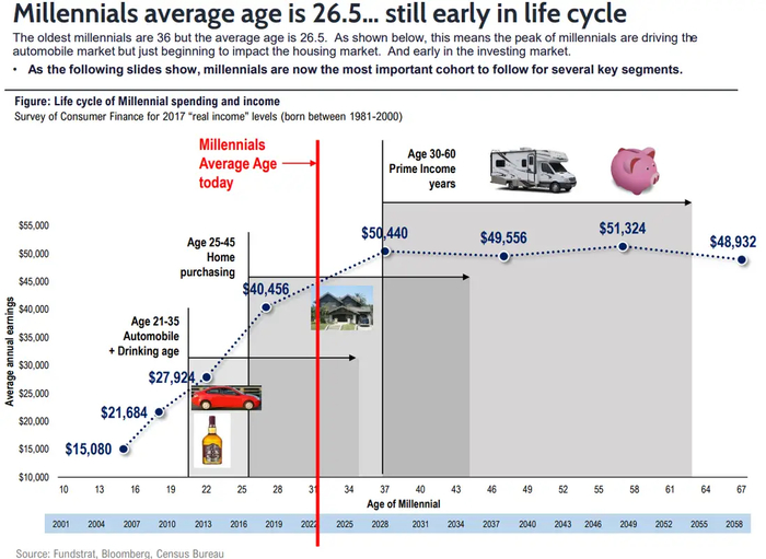 Lee表示,千禧一代要到2038年才会达到顶峰,这意味着从现在到那时股市还有很大的上涨空间。