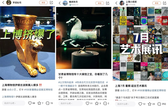 “放假跟同学去兰州玩,参考大众点评上的甘肃省博物馆的看展攻略,了解了9件镇馆之宝的背景知识。现场再按照笔记建议的路线参观,既能避暑又能学知识。”在上海读大学的李子建表示。“在高铁上临时上大众点评看了7月上海最新的展讯,打算白天去上海博物馆的伊朗古波斯展‘看展避暑’,带孩子领略埃及古文明文化。”趁暑假带妻儿从南京来上海旅游的林斌告诉记者。