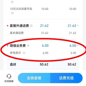 陈先生告诉澎湃新闻,两位老人的资费套餐都是2007年老人自己办理的,每月资费为23元。近日在检查老人资费账单时,他发现老人每月话费有50多元。其中,除了套餐外的通话费外,两位老人还被收取了每月6元的增值业务费,该业务备注是“来电显示”。