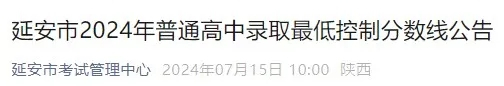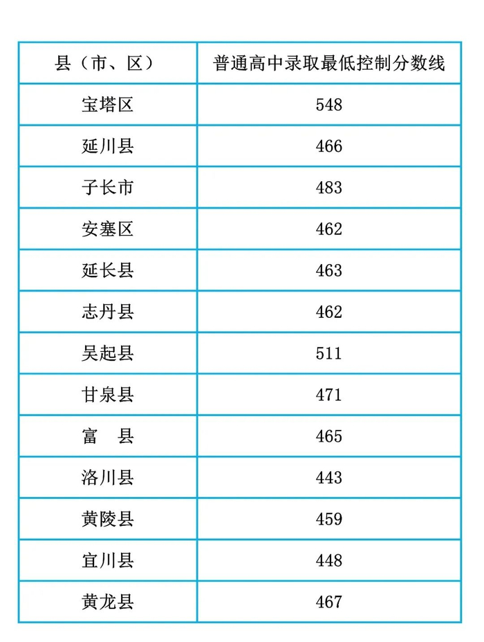 按照2024年延安市普通高中招生入学工作安排,各县(市、区)教科体(教体)局根据市教育局、市发展和改革委员会联合下达的普通高中招生计划和辖区九年级考生初中学业水平考试成绩,划定了本县(市、区)普通高中最低录取控制分数线。现公布如下: