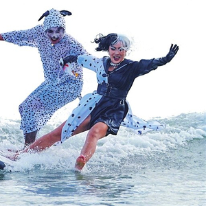 三亚后海,两位年轻人通过角色扮演的形式冲浪。海南日报全媒体记者王程龙 摄