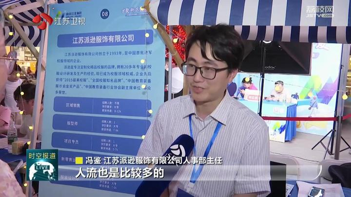 江苏派逊服饰有限公司人事部主任冯鉴告诉记者,人流量比较多,带来的简历也是比较大的,不到一个小时已经收了有20多份简历,效果远远超出预期。