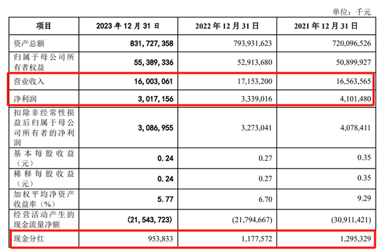 数据显示,2020-2022年,广州银行分别实现净利润44.55亿元、41.01亿元和33.39亿元,分红总额分别为12.95亿元、11.78亿元和9.54亿元,分别占净利润比率的29.08%、28.71%和28.57%。