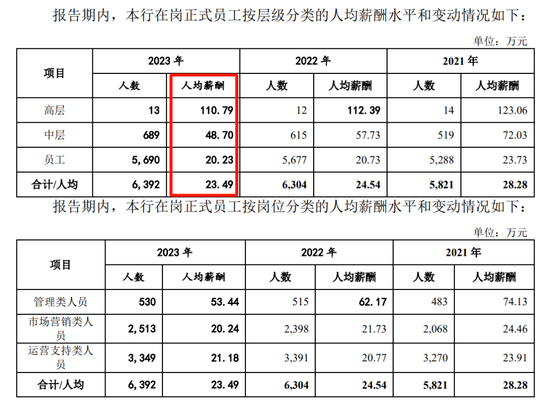 相较之下,广州银行2023年度人均薪酬为23.49万元。