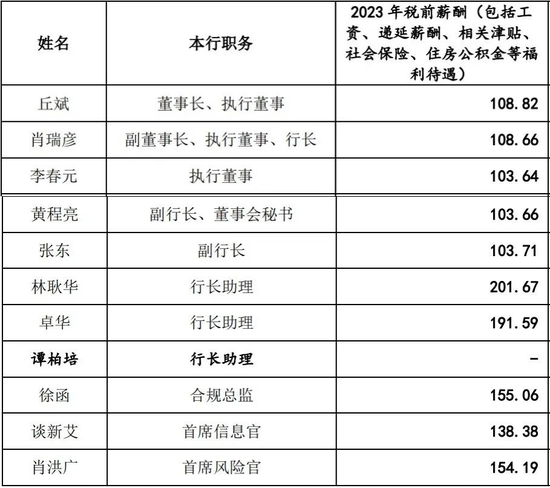 值得注意的是,广州银行行长助理林耿华2023年税前薪酬为201.67万元,是该行薪酬最高的高管。