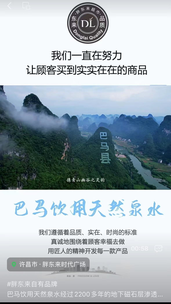 事实上,胖东来早在2019年便和广西巴马铂泉天然矿泉水有限公司,合作推出了一系列饮用天然泉水,共有350ml、500ml和5L三种规格,在胖东来超市和烟酒店中销售。到2023年,胖东来还在发文为这款矿泉水进行宣传,但根据社交平台上当地消费者披露的信息,也是在这一年胖东来开始清仓促销DL八马矿泉水,350毫升售价1元。