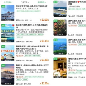 据了解,有多艘邮轮出现尾单甩卖情况,且部分航线价格下跌幅度甚至达到了60%。以7月某邮轮航线为例,初上架时双人间的均价约为5000元/人,但临近发船期,该航线内舱双人间价格仅需约2500元/人。